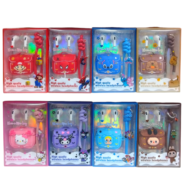 Auricular Inalámbrico Bluetooth Recargable Con Funda Personaje Y Tirita TWS-33