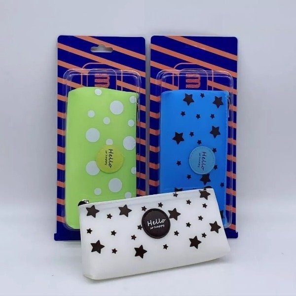 Cartuchera De Goma Estrellas Puntos 3 Colores
