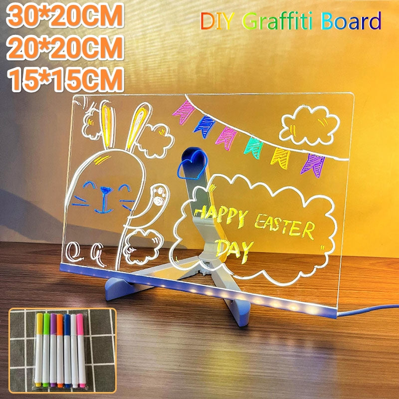 Pizarra Acrílico Borradable Seco Con Luz LED Y Marcadores LT-3020 3 Tamaños